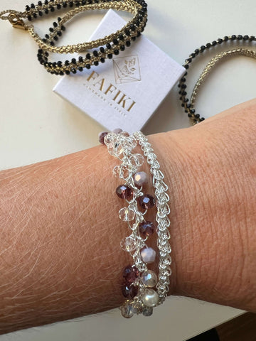 Bracciale Duo unisce due anime: la luce dei cristalli e la forza del filo intrecciato italiano.