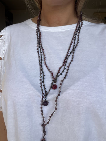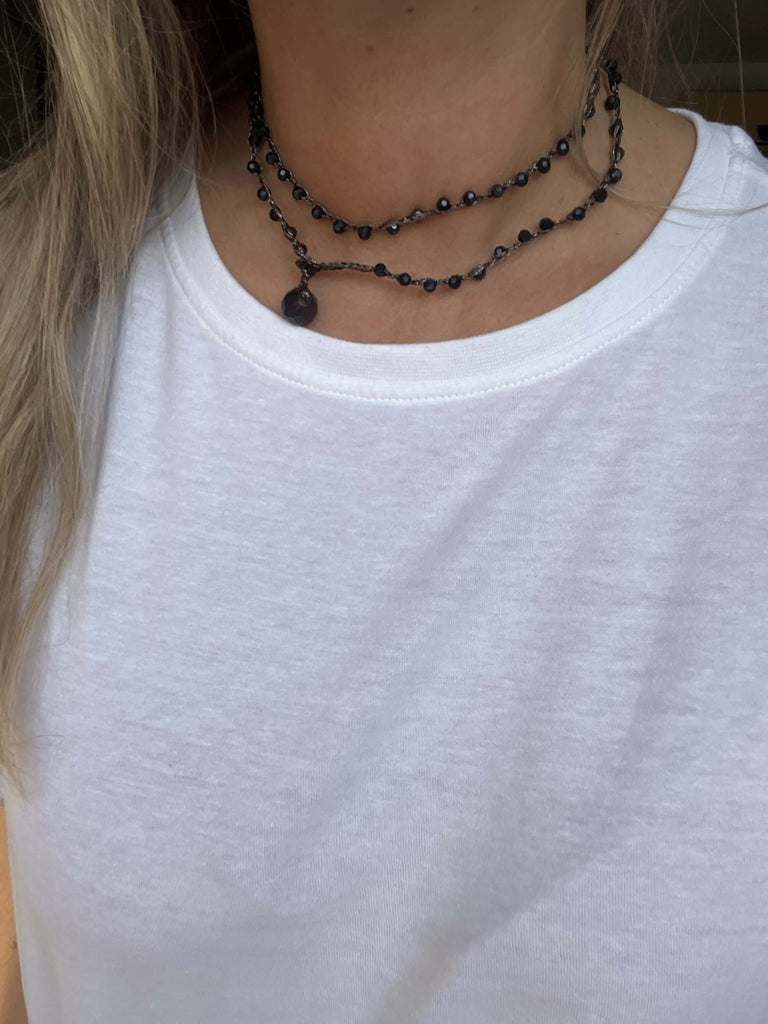 Puoi indossarla come collana o bracciale wrap, seguendo il ritmo del tuo stile.