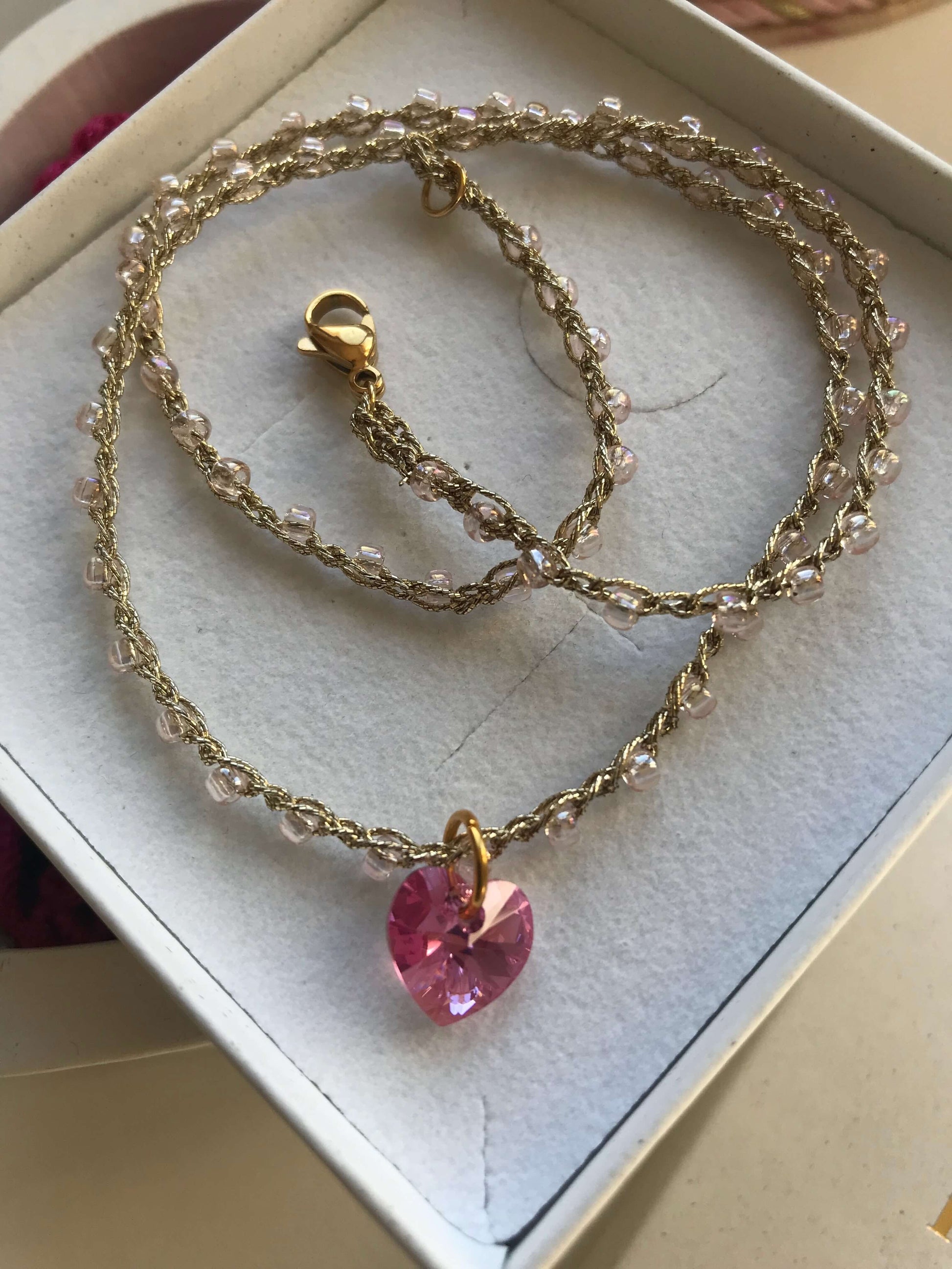 Una collana girocollo creata a mano, intrecciata con perline TOHO e illuminata da un cuore Swarovski.